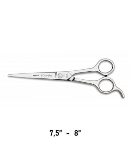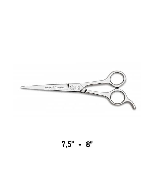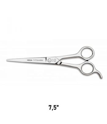 Mega es una tijera de corte 3 Claveles con filo microdentado, especialmente indicada para peluquería y barbería.