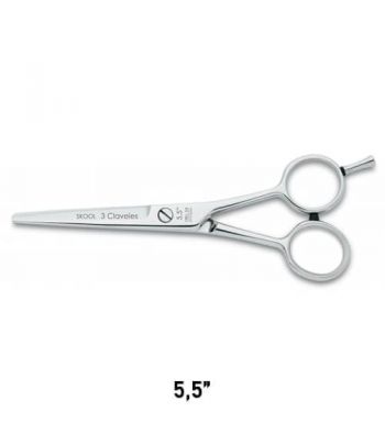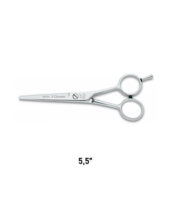 Skool es una tijera de peluquería de corte 3 Claveles de 5.5” con filo microdentado.